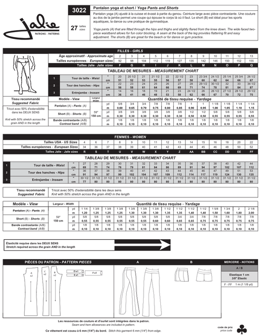 Jalie - 3022 - Yoga Pants & Shorts