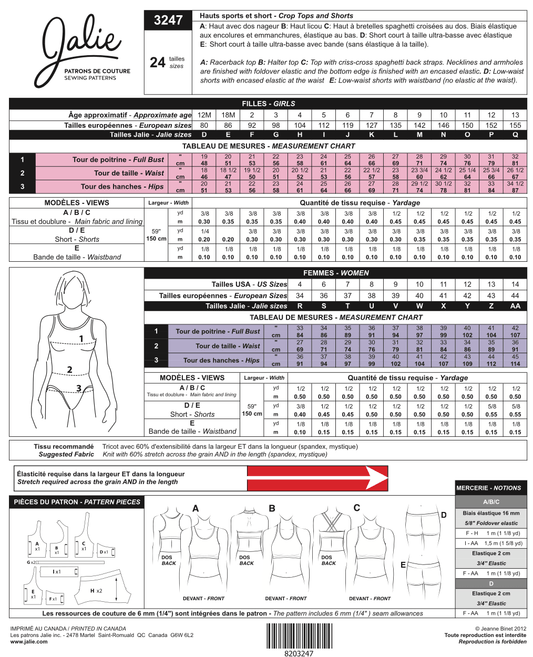 Jalie - 3247 - Cropped Tops and Gym Shorts