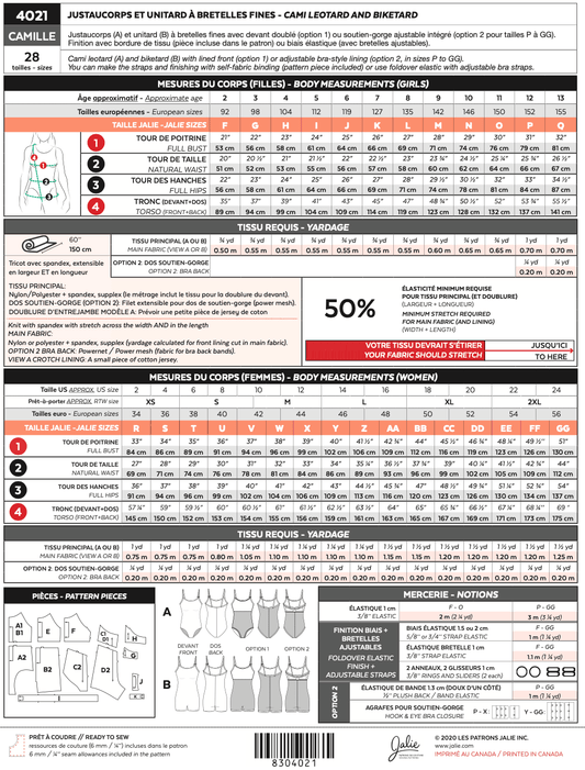 Jalie - 4021 - CAMILLE Cami Leotard & Biketard