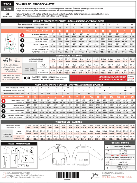 Jalie - 3907 - ALEX Half-Zip Pullover