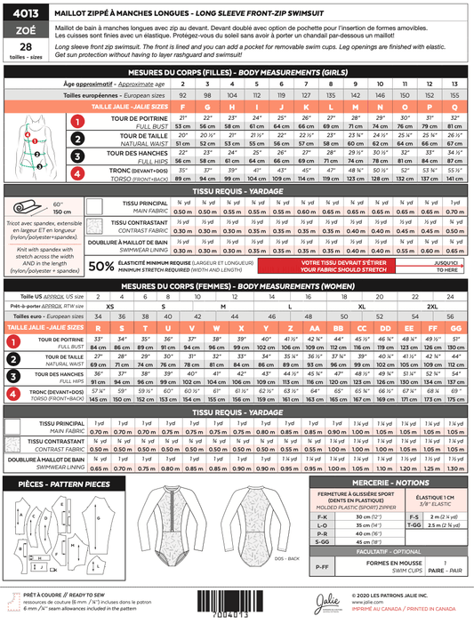 Jalie - 4013 - ZOE Long-Sleeve Rashguard Swimsuit