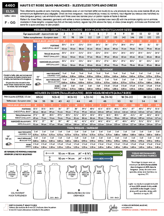 Jalie - 4460 - Elsa Sleeveless Top & Dress