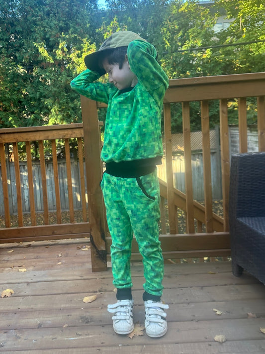 Pixel Blocks - Green - Cotton French Terry Knit