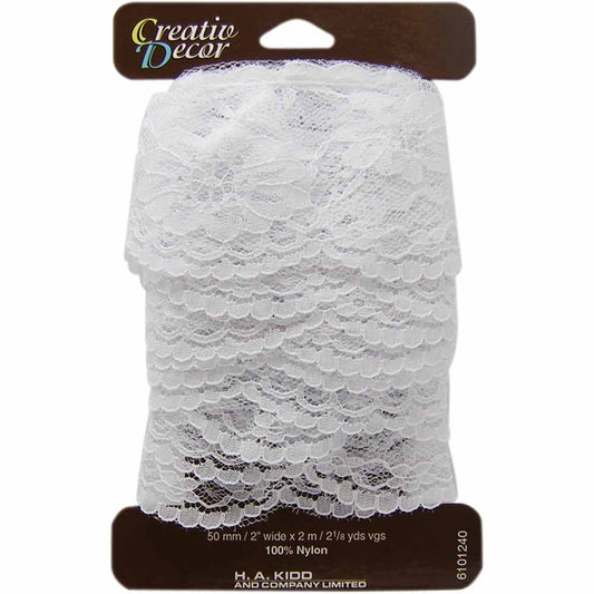 Floral Lace Trim - White - Nylon - 50mm x 2m bobbin