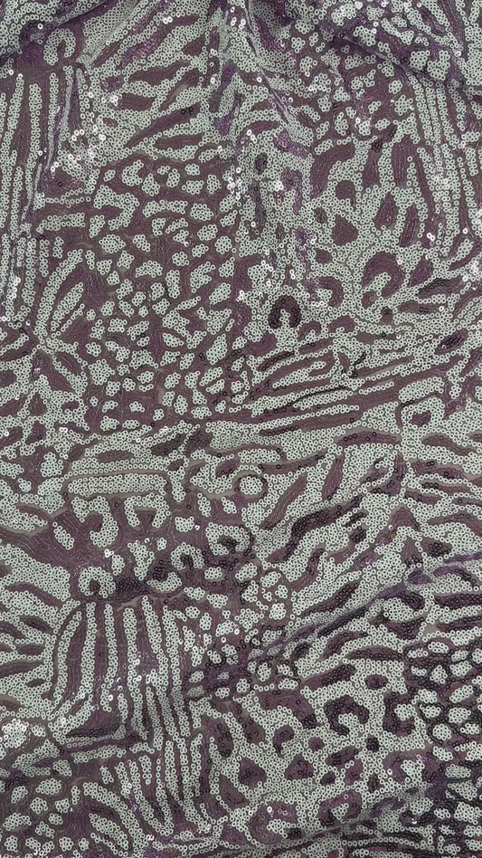 13" Remnant - White & Purple Design - Sequin Fabric - Film Studio Deadstock