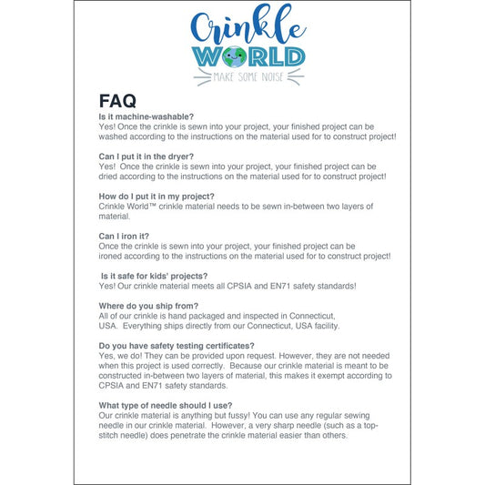 Crinkle Material 48" x 1yd package for Baby toys, books, sensory toys - aka rustle paper, crinkle paper safety tested