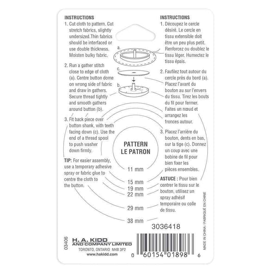 UNIQUE SEWING Buttons to Cover Refill - size 24 - 15mm (5⁄8″) - 6 sets