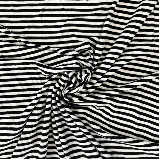 Bamboo Stretch Jersey Knit - Black and White Stripes - Yarn Dyed - Deadstock - 250gsm