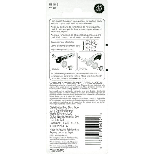 Olfa - 45mm Tungsten Tool Steel Rotary Blades - 5 pack