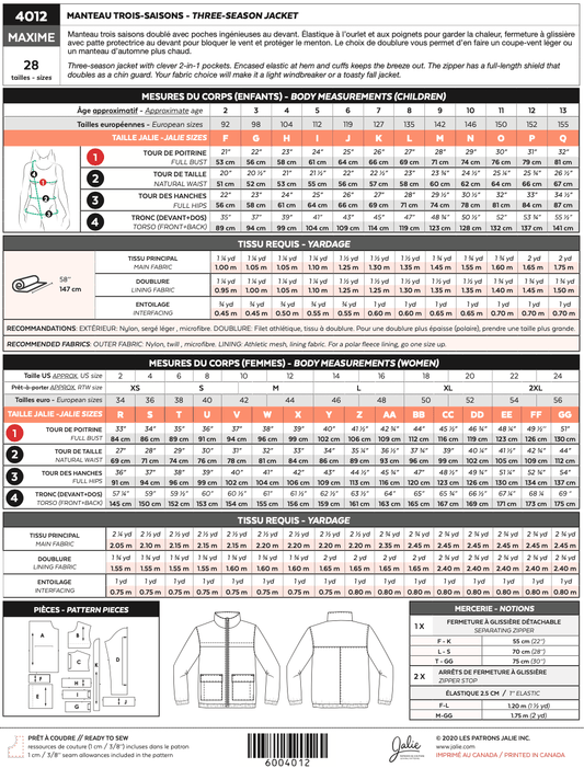 Jalie - 4012 - MAXIME Three-Season Jacket