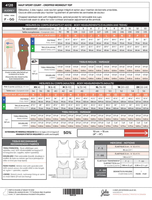 Jalie - 4128 - AUDREY Cropped Workout Top