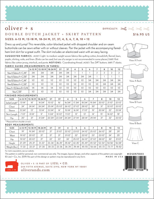 Oliver + S - Double Dutch Jacket and Skirt Pattern - 6 months to 12 years