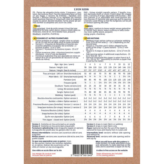 Ikatee - Lyon Kids Overalls - 3/12 Y - Paper Sewing Pattern