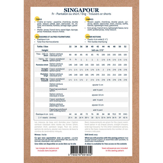 Ikatee - SINGAPOUR Adult Trousers and Shorts - 32/52 - Paper Sewing Pattern