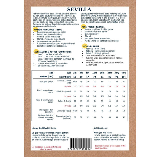 Ikatee - SEVILLA Harem pants - Baby 1M-4Y - Paper Sewing Pattern
