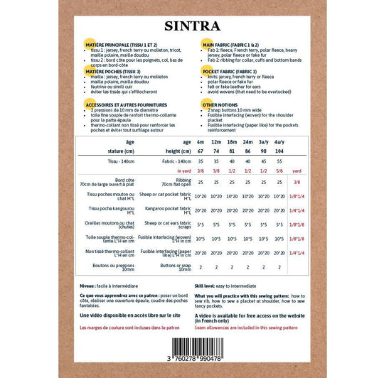 Ikatee - SINTRA sweatshirt - Baby 6M/4Y - Paper Sewing Pattern