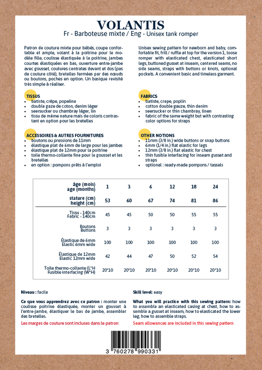 Ikatee - VOLANTIS Romper - Babies 1-24 months - Paper Sewing Pattern