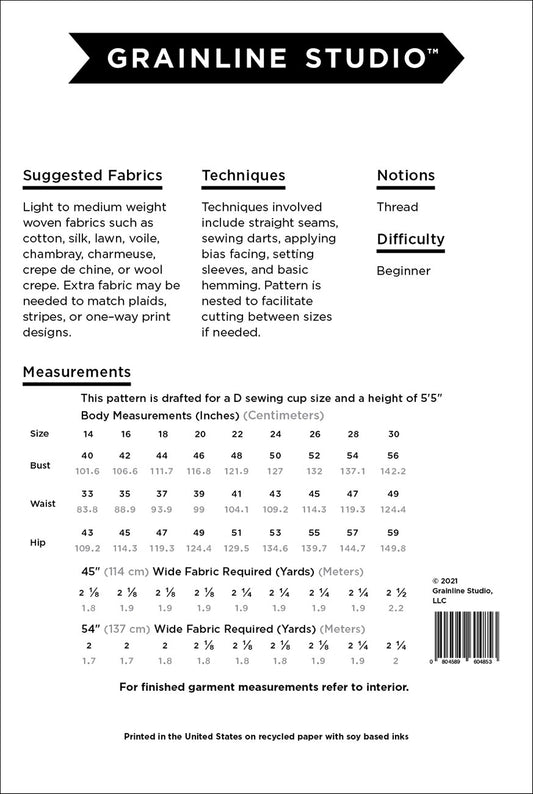Vendor:Grainline StudioRegular price $34.25 AUDSale price $34.25 AUD Regular priceUnit price per