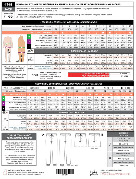Jalie - 4348 - JACK Pull-on Lounge Pants & Shorts
