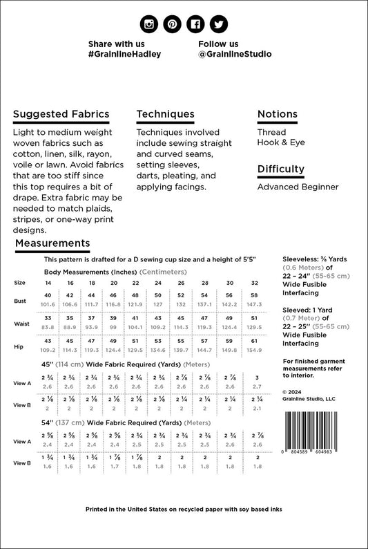 The Hadley Top Pattern - 14 - 32 - Grainline Studio