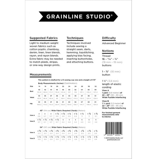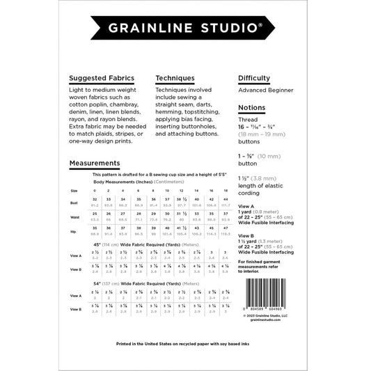 Vendor:Grainline StudioRegular price $34.25 AUDSale price $34.25 AUD Regular priceUnit price per$0.00 AUD