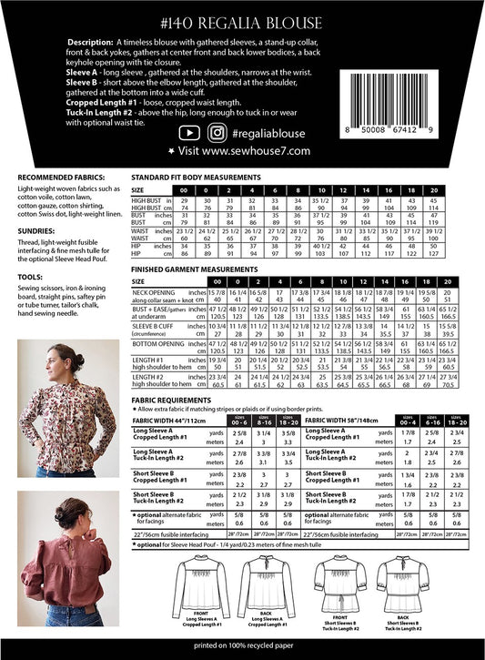 Sew House Seven - Regalia Blouse - sizes 00-20