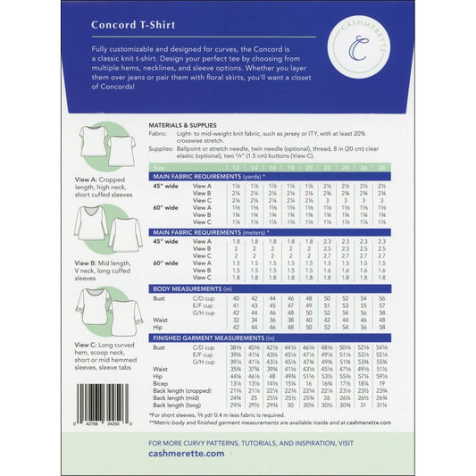 Concord T-Shirt - sizes 12-32 - By Cashmerette