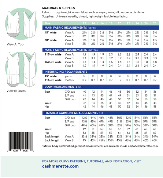 Upton Dress & Skirt Expansion Pack - sizes 12-32 - By Cashmerette