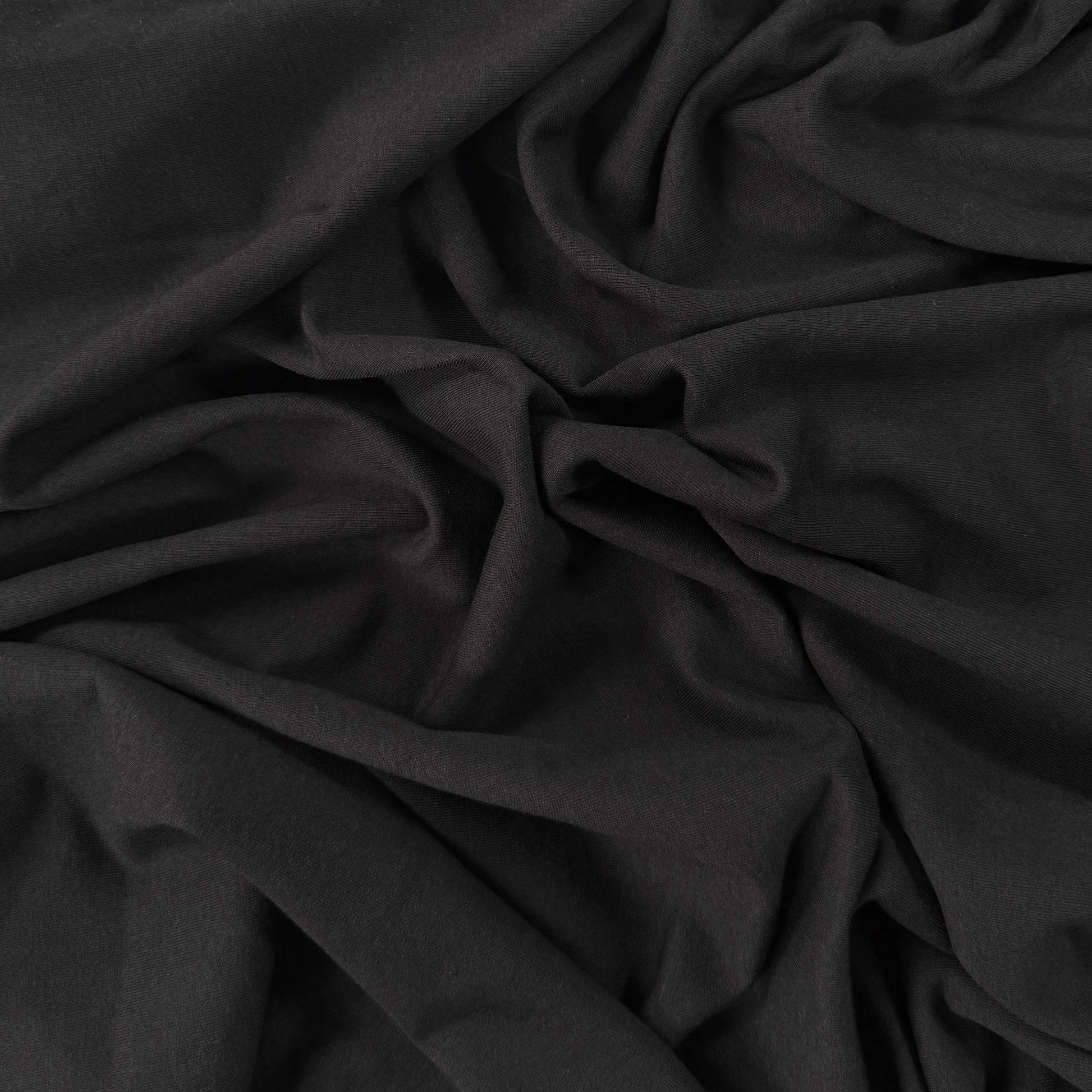 Soft and cozy bamboo and cotton fleece fabric in black. A great midweight multipurpose fabric with some stretch for added comfort. Use it for sweatpants, hoodies, cardigans, baby clothes & more.