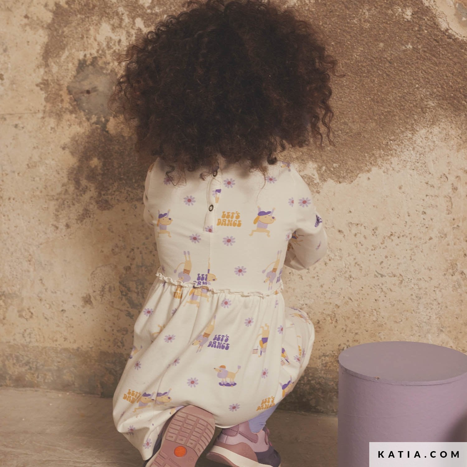 This soft and comfortable jersey fabric by Katia Fabrics featuring fun dancing dogs with the motto Let's Dance, is the ideal fabric to sew T-shirts or pants for the youngest members of the family.