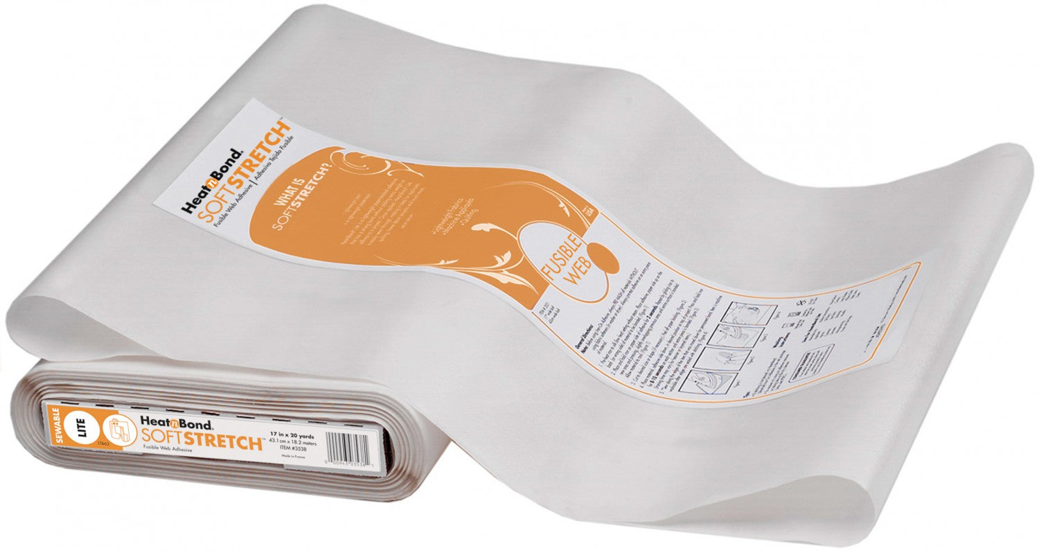 HeatnBond Soft Stretch Lite is a sewable, lightweight iron-on web adhesive specially designed to move with your stretch fabric while maintaining a strong bond! There is no added bulk and maintains a soft hand after fusing. Great to use with knits, stretch denim, spandex, jersey fabrics, fleece and flannel. 17 inches x 20 yard bolt (43 cm x 18.2 m) Permanent and sewable double-sided iron-on adhesive. Designed for stretch fabrics. Saves time by eliminating pinning and doesn’t gum up needles.