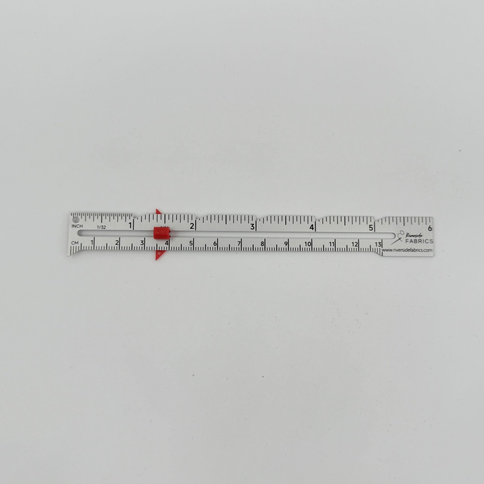 Use our custom metal seam gauge for repeat markings and even spacing. The sliding marker can be moved and will stay in place for repeated marking. Use to measure and mark seam allowances and hems on pattern alterations and designs. This gauge can also be used to mark buttonhole spacing and length; as well as, to evenly space tucks and pleats.
