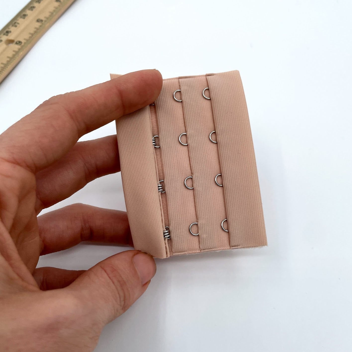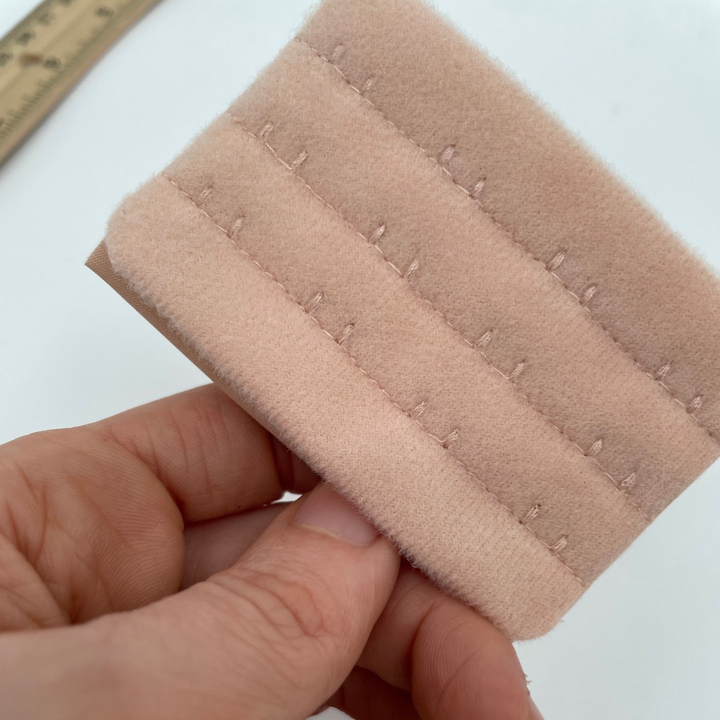 Apricot 4 x 3 hook and eye bra closure.