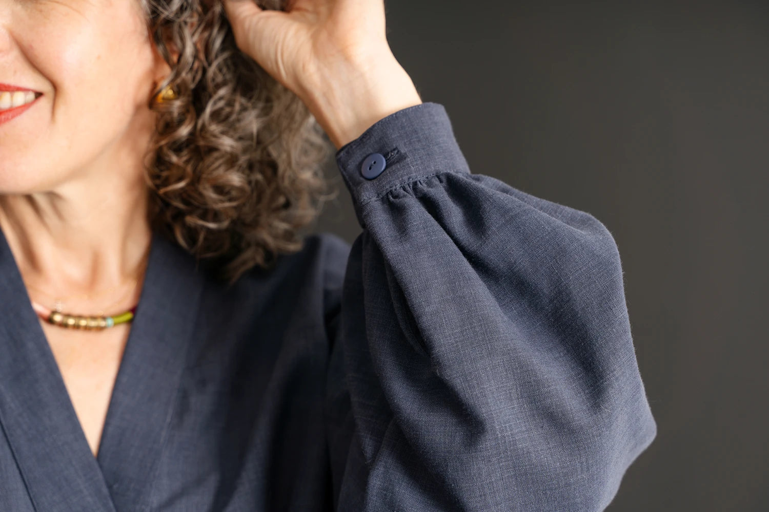 You can also choose the short-sleeved version with cuffed sleeves. Both views have side pockets, a neck facing, and a forgiving fit that’s enhanced by pleats and darts. The neckline and skirt ties are especially secure on this dress, which means you can enjoy the ease of a wrap dress without common exposure worries.