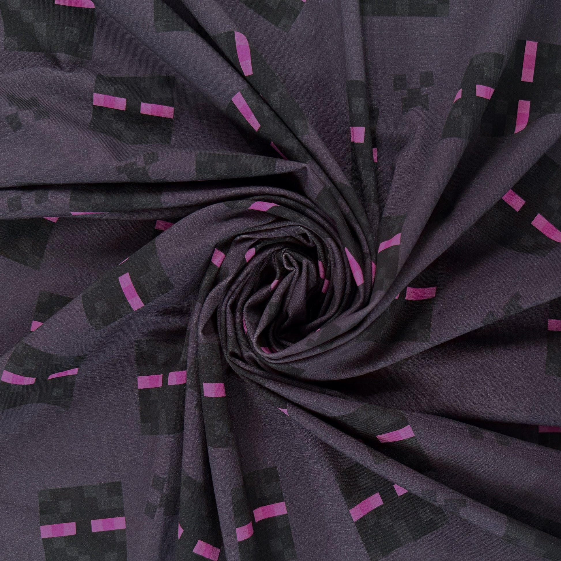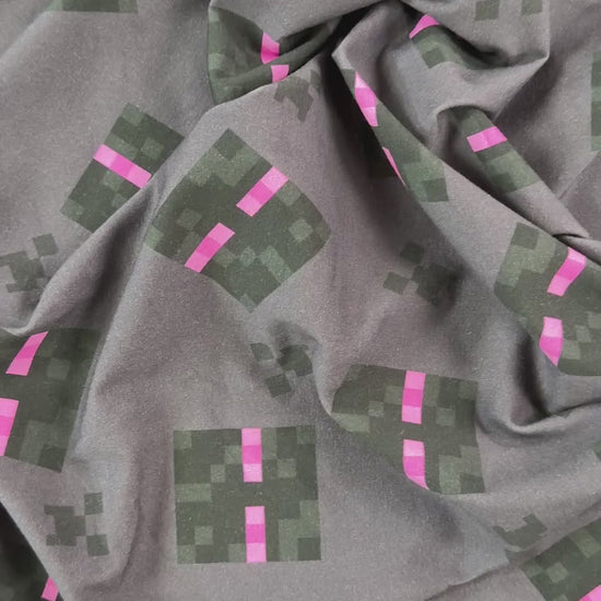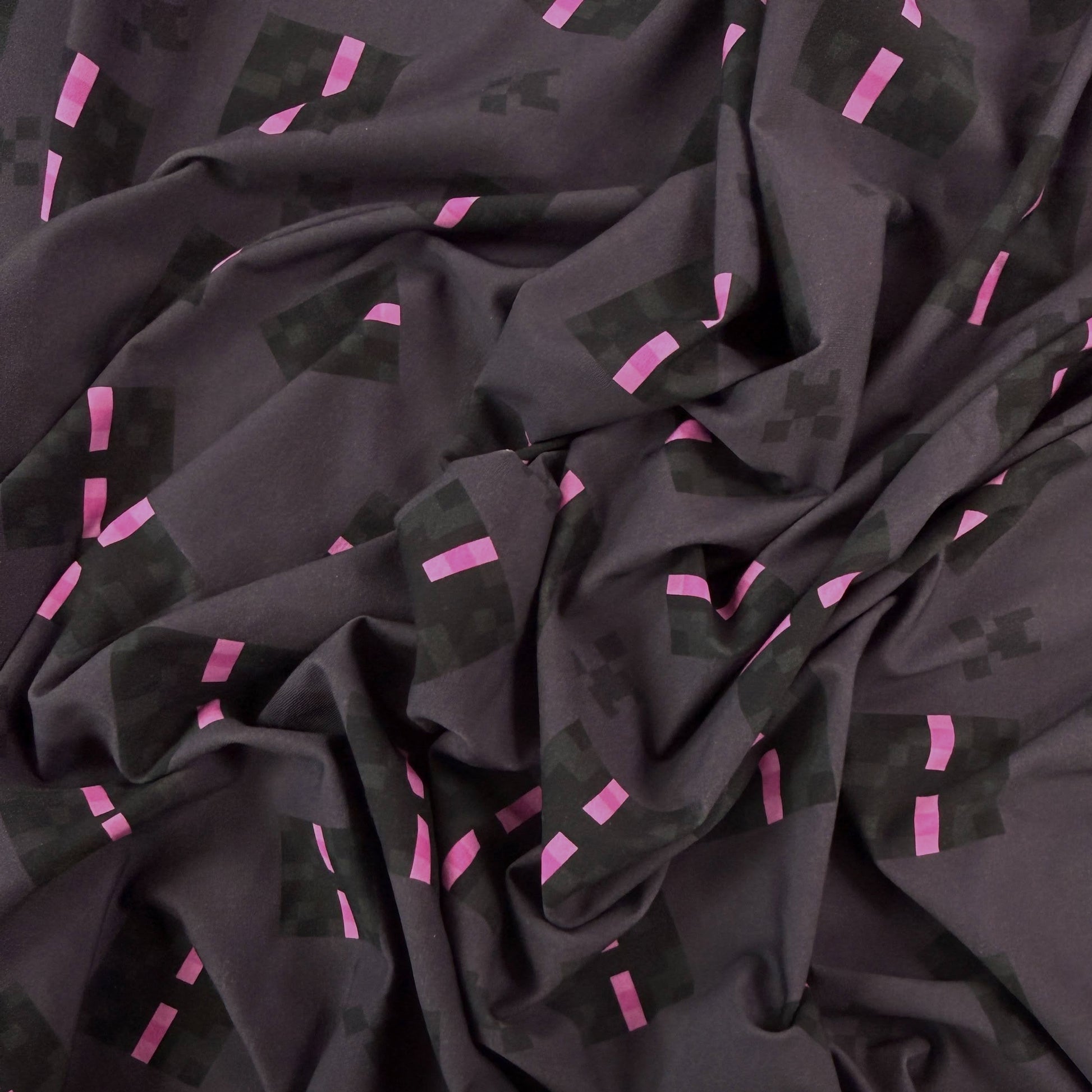 Minecraft fabric featuring endermen. Soft, comfortable and breathable, this cotton jersey fabric is great for t-shirts, leggings, tank tops and more. These would make the perfect jammies for a little minecraft fan!