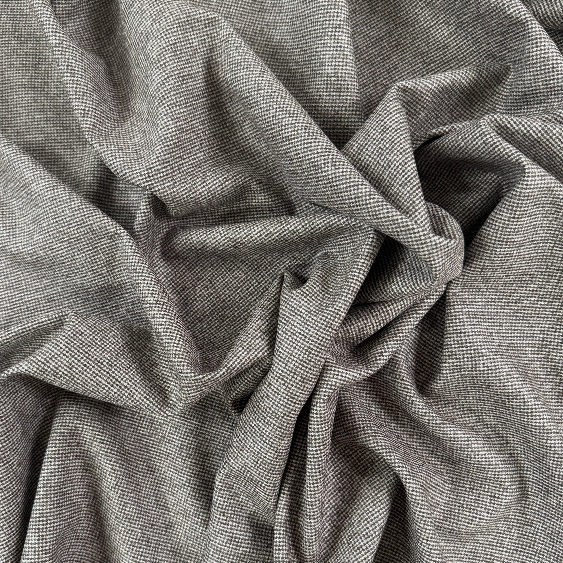 Gorgeous superfine (19.5 microns) wool fabric featuring a teeny tiny houndstooth print. This fabric is medium to heavy weight, breathable and durable, making it a great choice for transitional garments such as light jackets, trousers & more.