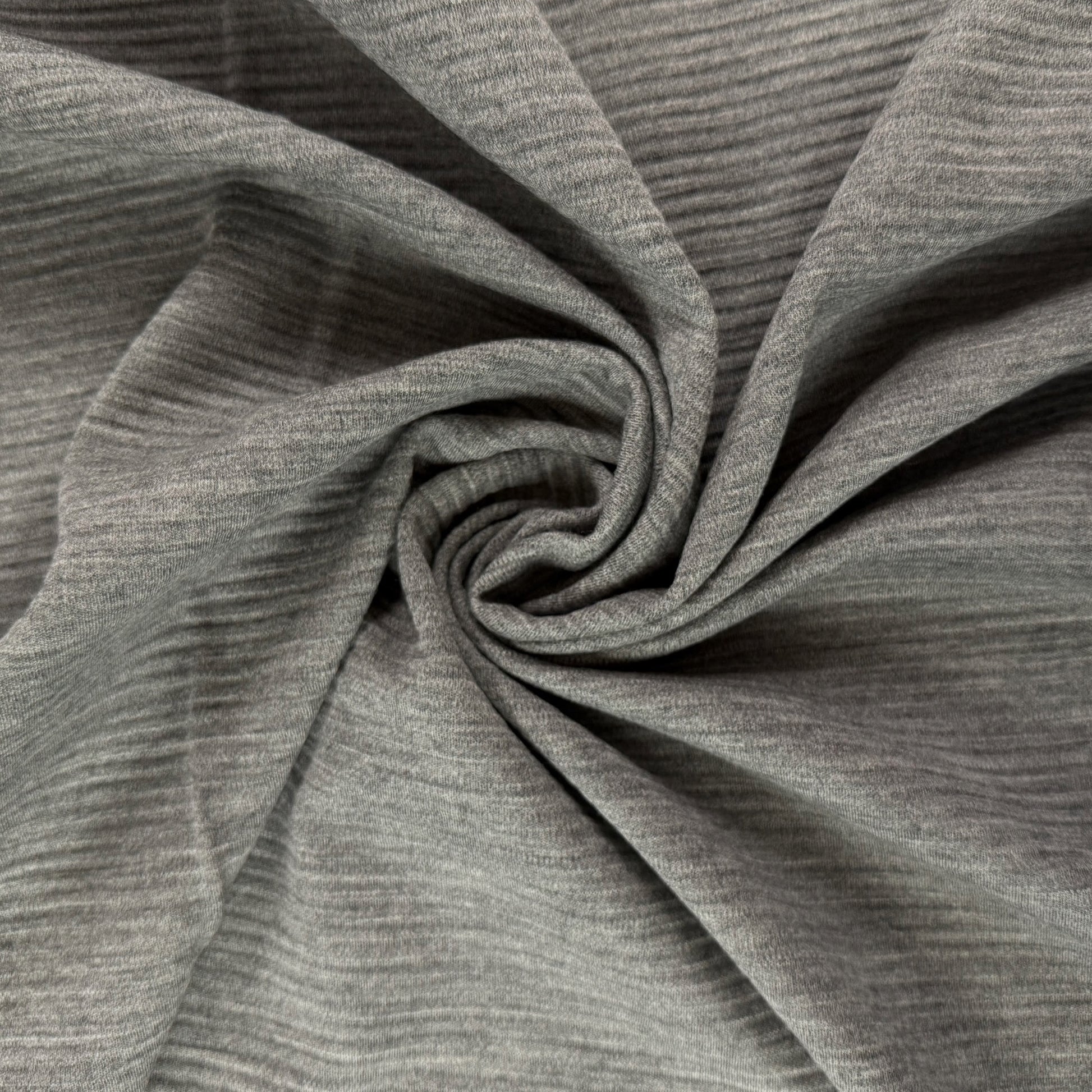 Stay warm and cozy with this heavy textured double knit wool fabric in heathered grey. One side of the fabric has a flat surface and the front features raised ridges.