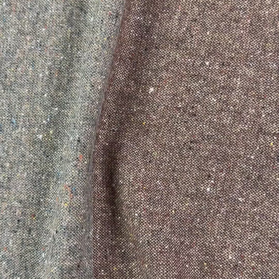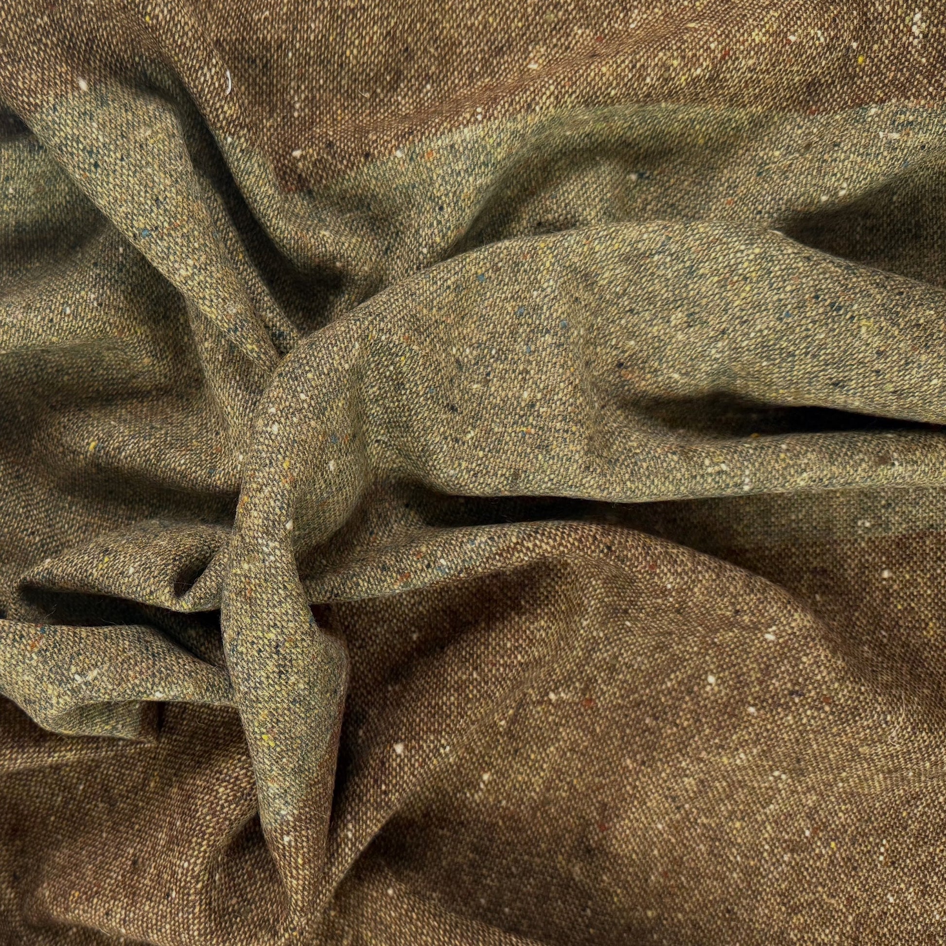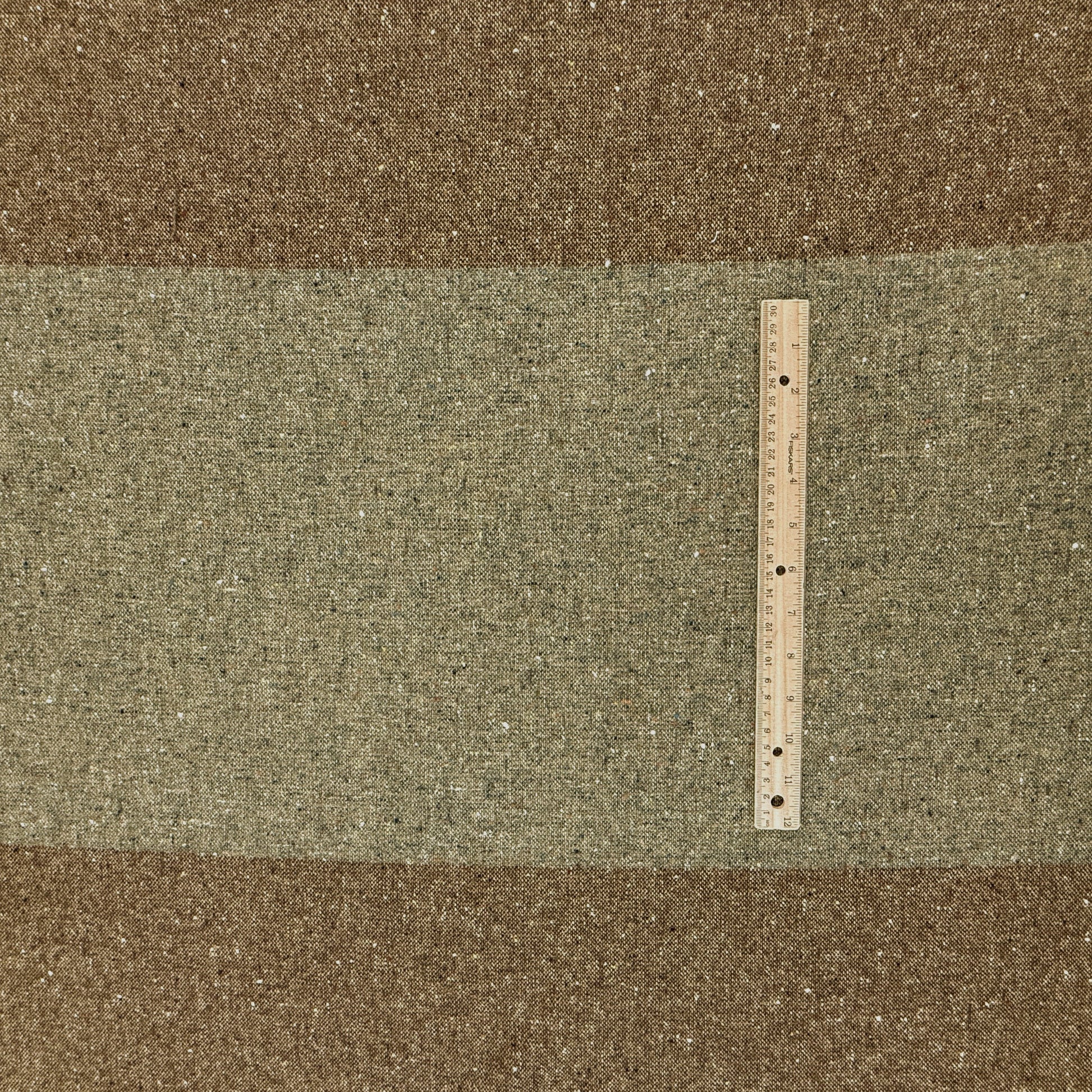 A truly unique tweed fabric with extra large stripes parallel to the width. This gorgeous midweight fabric in brown and olive green is the perfect fabric for your fall wardrobe. Use it for trousers, heavier skirts, jackets & more.