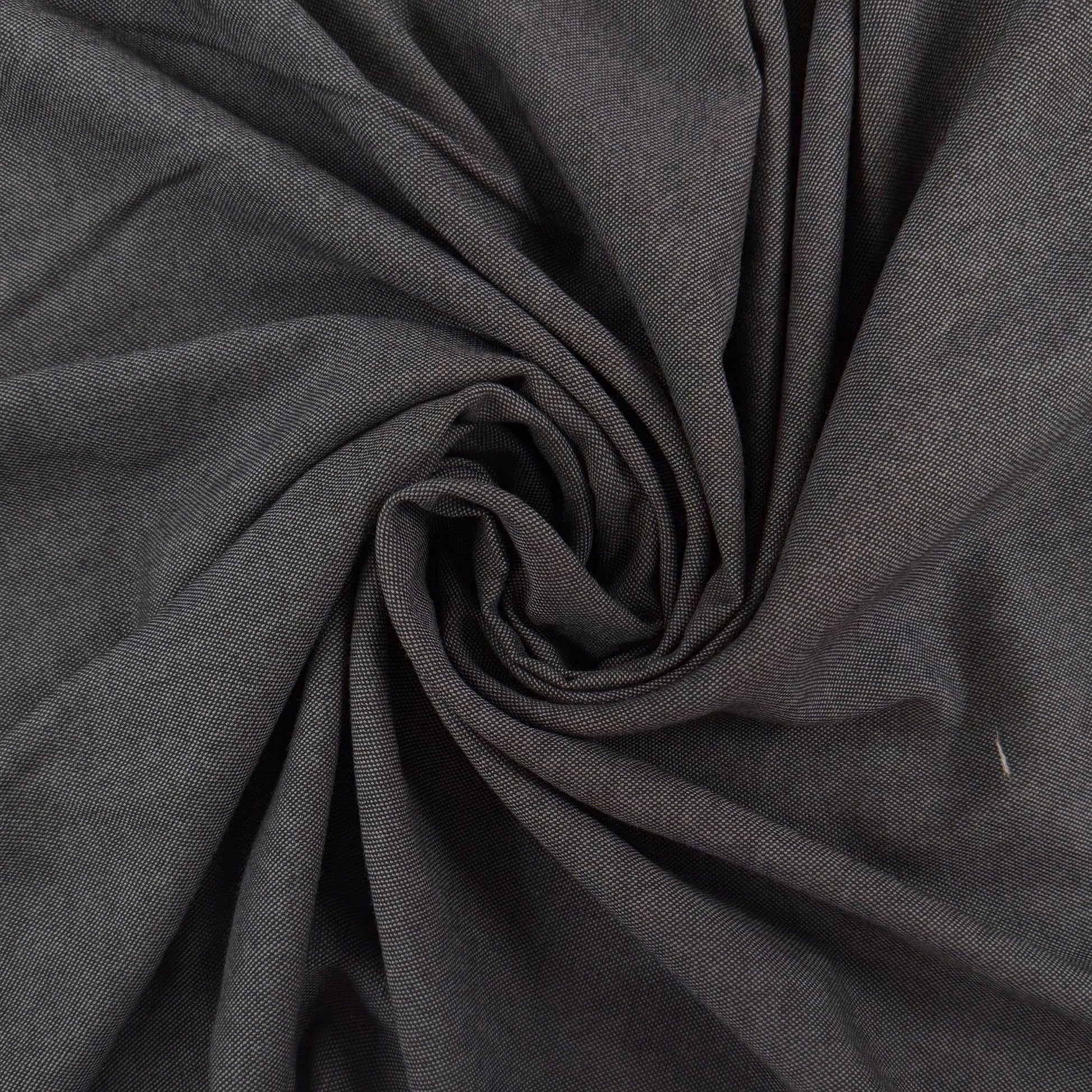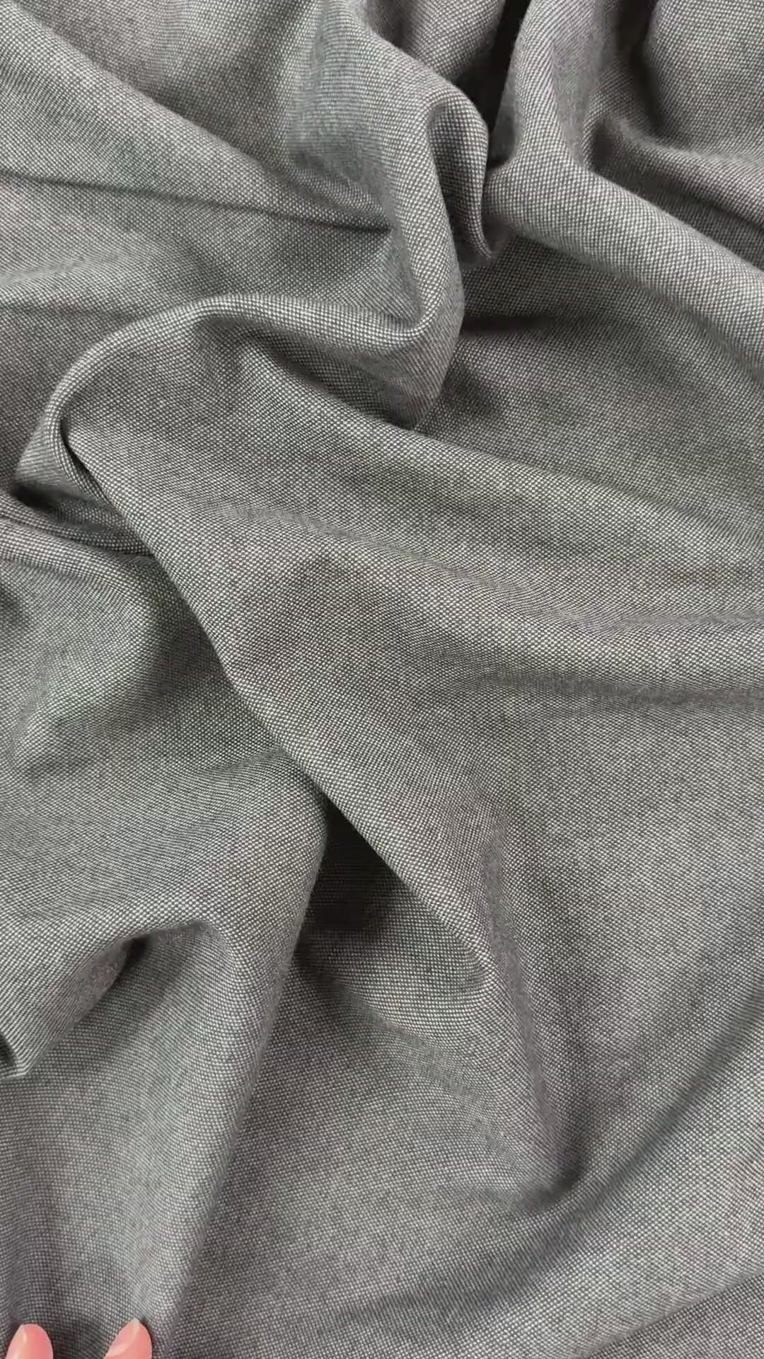 This fabric is slightly textured and has yarn dyed threads in dark grey and a slightly lighter grey. Made of 100% wool, this fabric is warm, insulating, yet breathable. Use it for pants, jackets, winter skirts & more.